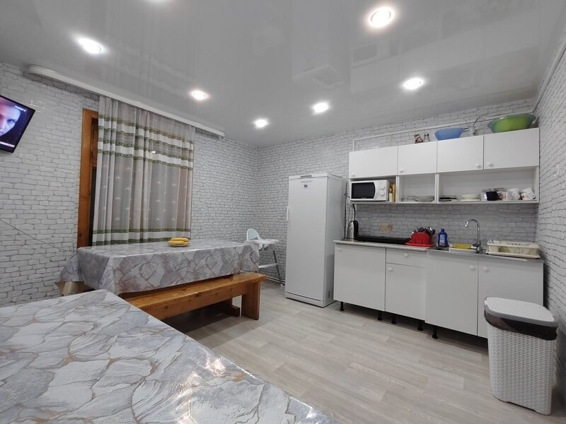 Гости смогут приготовить для себя самостоятельно желаемые блюда, поскольку общая кухня оснащена всем необходимым для этого. Важно: рядом работает продуктовый магазин с хозяйственным отделом. Внутри номеров царит атмосфера уюта и комфорта, благоприятное впечатление дополняет их дизайн.