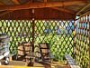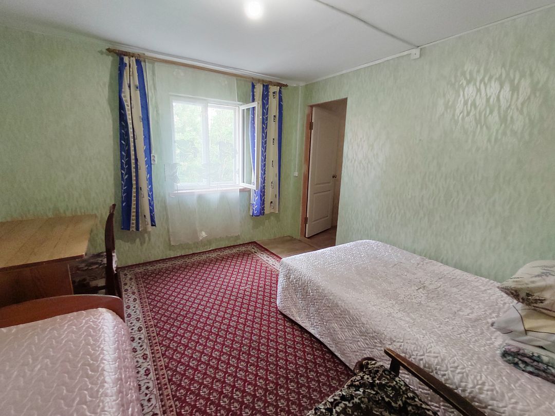 3-х местный номер на 1-м этаже с окном во двор и на горы (№4), с окном в глухую сторону (№7). Туалет в номере, душ общий в тёплом помещении (вход с заднего крыльца). Также есть баня-сауна с санузлом и с купелью. На территории беседки (одна из них с кухонной зоной), качели, 5 метровый бассейн и сибирский чан. Есть мангальная зона с 3 мангалами, в т.ч. новый мангал с грилем. Автопарковка на территории.