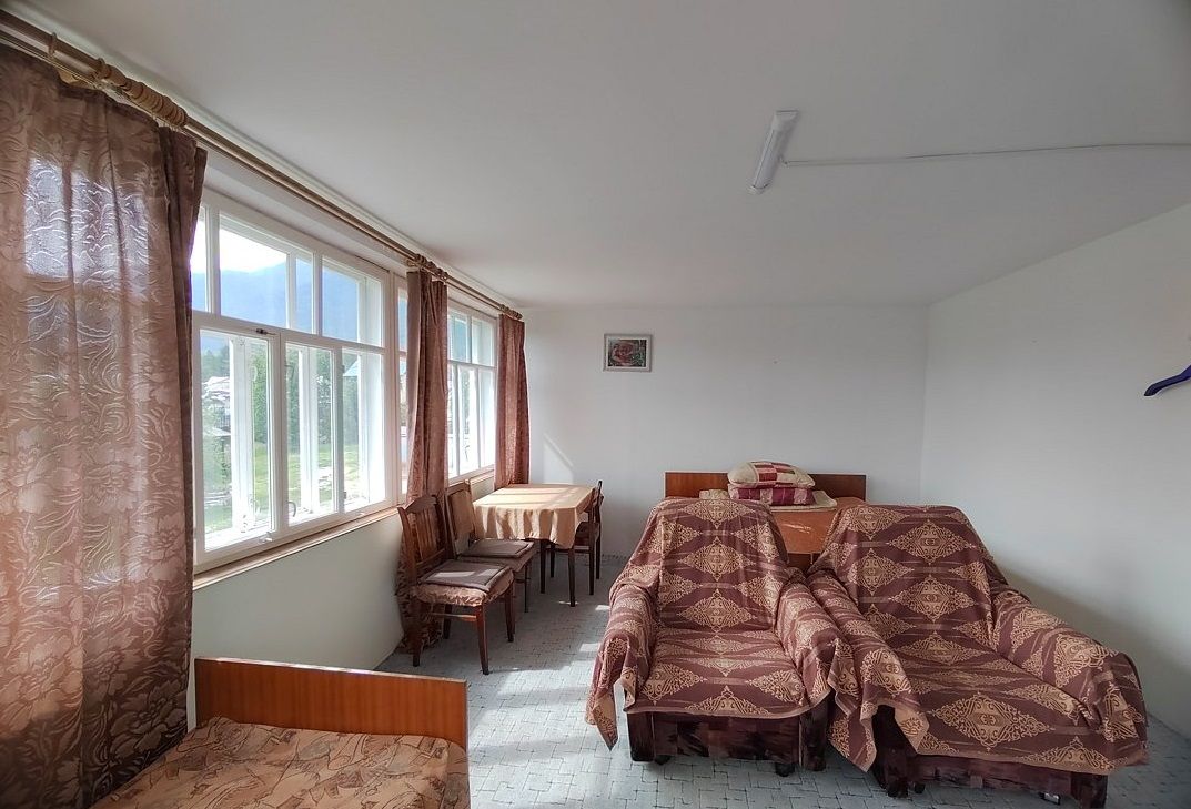 5-6 местный угловой номер на 2 этаже с 2 окнами, с красивым видом на горы.