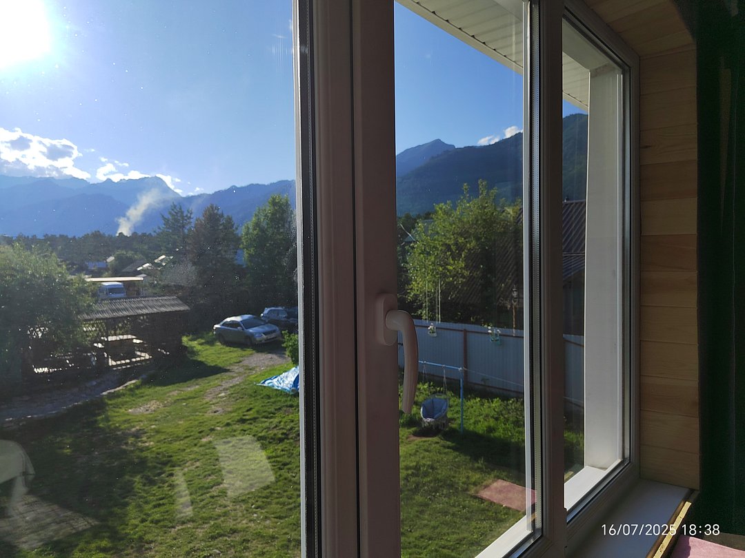 Из окна вид на горы и на сад. Тишина, пение птиц. Удобные новые матрасы, лёгкие и в меру тёплые новые натуральные одеяла, новые комфортные подушки.