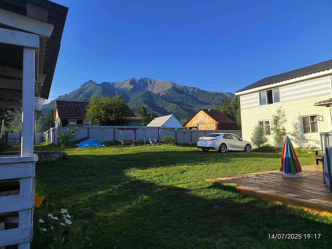 Большая территория с уютными беседками, мангалами. Есть качели. Парковка на территории. До центра Аршана 10 мин неспешным шагом по берегу реки.