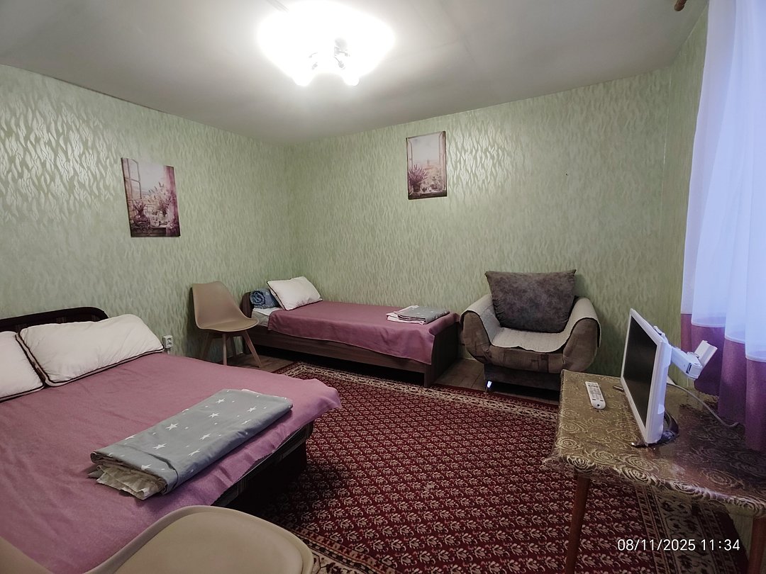 Семейный отдыхДостоинстваБыло все замечательно, хозяйка очень доброжелательная и приветливая женщина. В номере чисто, уютно. На кухне тоже порядок, вся нужная посуда имеется, есть микроволновка. Вообщем всё очень понравилось.
