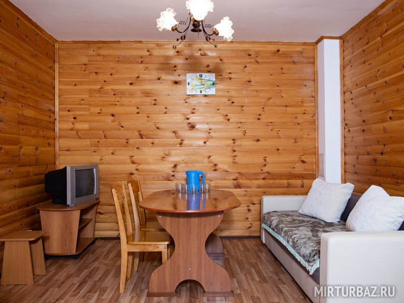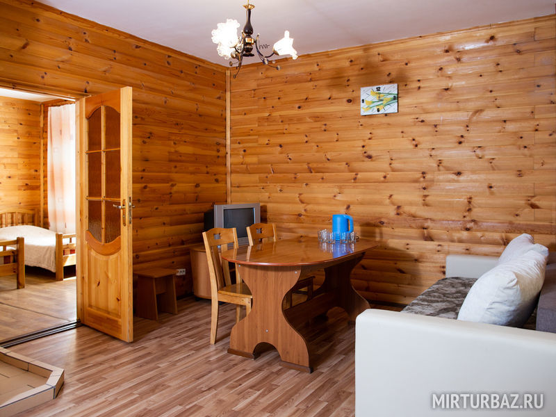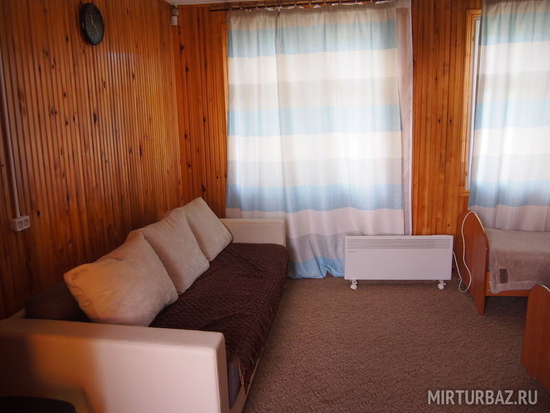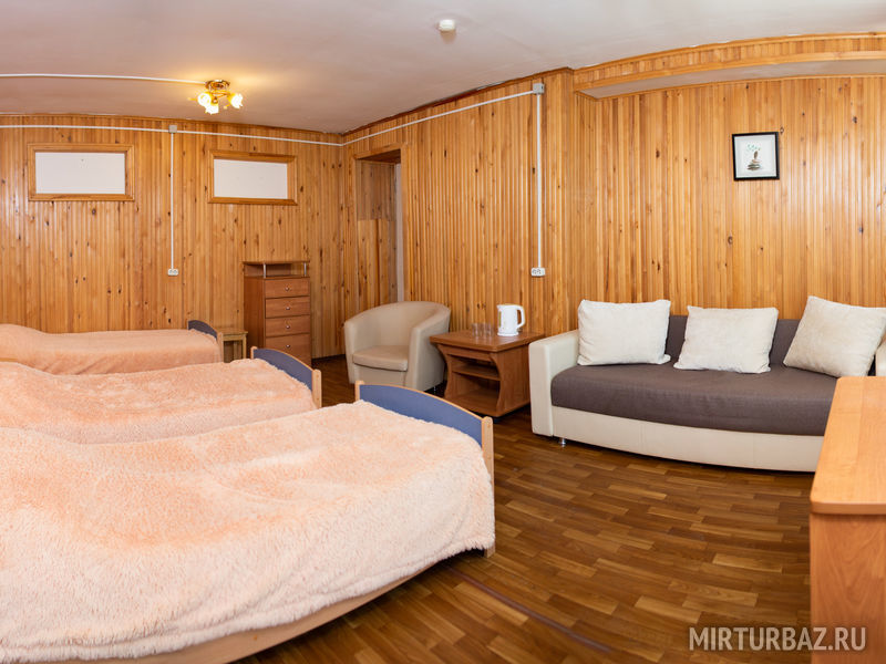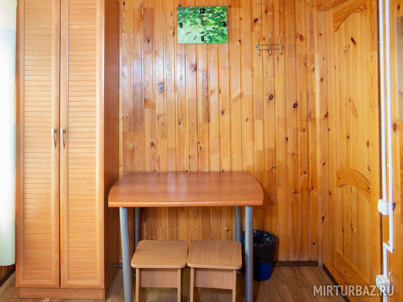 Комфортабельный четырехместный номер находится в одноэтажном корпусе, в котором так же расположены комод, стол, стулья. Удобства на этаже.