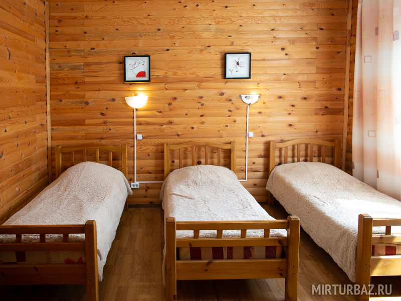 Трехместный номер расположен на первом этаже двухэтажного корпуса. В номере 3 полутороспальные кровати, комод, зеркало, тумбочка. Удобства для отдыхающих расположены в номере.