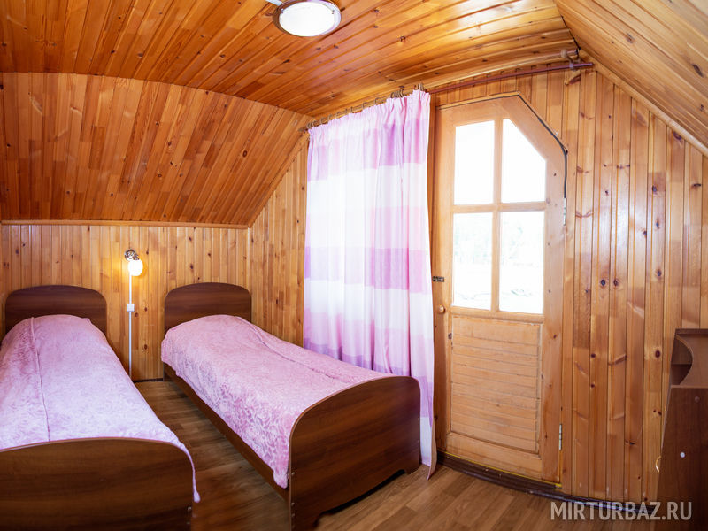 На втором этаже двухэтажного корпуса располагается двухместный номер, с удобствами на этаже, номер оснащен двумя кроватями, шкафом, зеркалом.