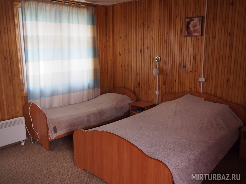 Двухместные номера расположены в одноэтажном корпусе, номера оснащены двумя полутора спальными кроватями, комодом, тумбочками, зеркалами, удобства для отдыхающих находятся на этаже.