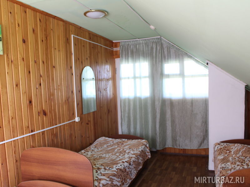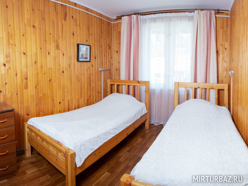 Двухместный комфортабельный номер располагается на втором этаже двухэтажного корпуса, номер оснащён двумя кроватями, комодом, зеркалом, удобства на этаже.