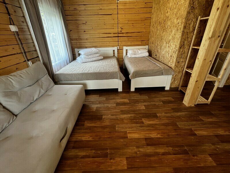 - две кровати: двуспальная и полутораспальная, диван двуспальный;