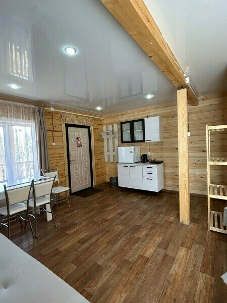 Семейный отдыхДостоинстваПрекрасное и доступное место! Дом с четырьмя номерами, каждый с отдельным входом. В номерах есть все необходимое, мини-кухня с посудой, душ и туалет. Номера чистые. Парковка за воротами. На территории — современная баня, необыкновенно стильная и качественная. Открывается великолепный вид на реку и ручей. Вечером можно насладиться мангалом и отдельными беседками. Имеется даже забавный спаниель!
