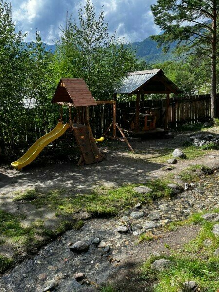 В номере тёплые полы, шикарный вид с балкона/окна на реку и горы. Перед домом бежит ручей. На территории мангальная зона, стоянка, беседки, детская площадка.