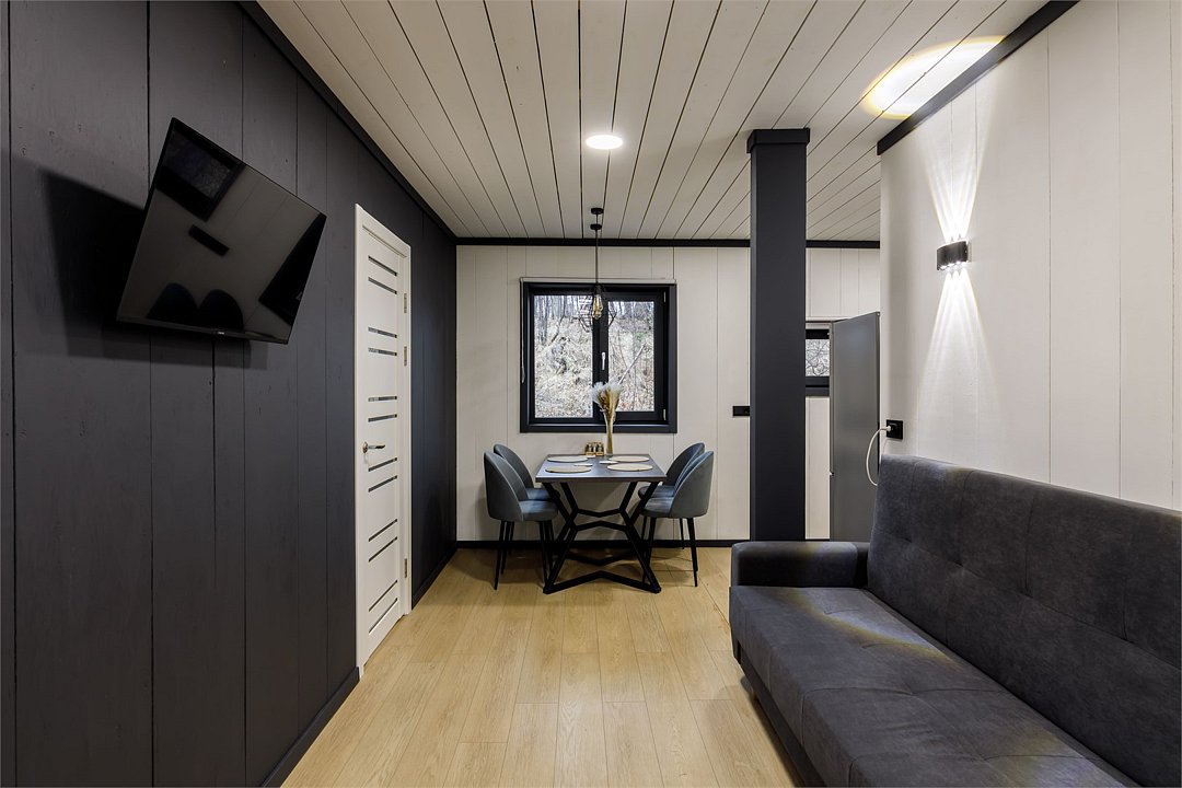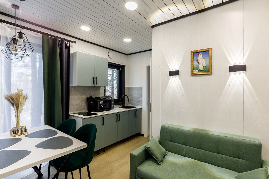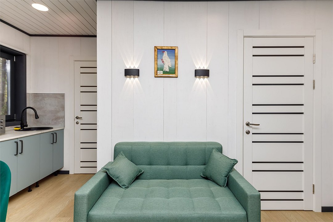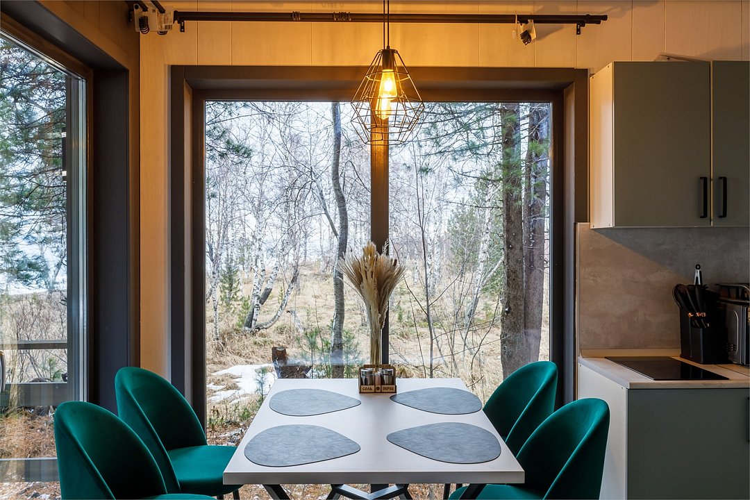 Уютный двухкомнатный модульный дом с красивым видом из окна на озеро Байкал с панорамными окнами, теплыми полами и индивидуальной террасой с мебелью, выполнен из экологически чистых материалов по современным технологиям. В номере есть все необходимое для комфортного проживания. Максимальное количество гостей - 3 человека (двуспальная кровать или 2 односпальные кровати + 1 диван).Услуги и удобства