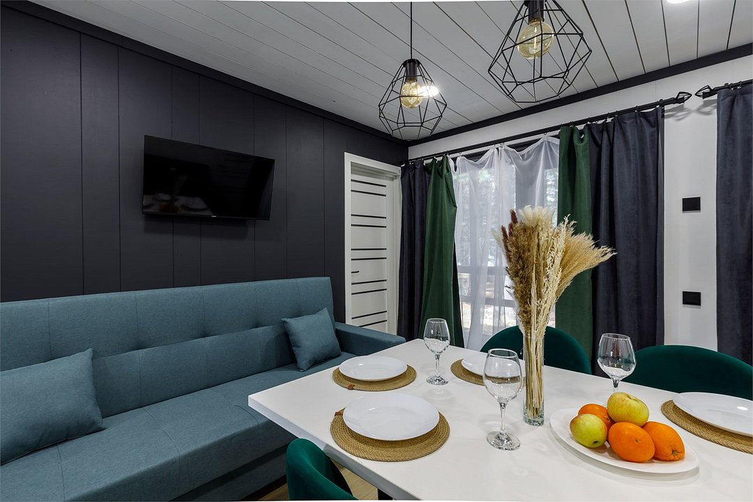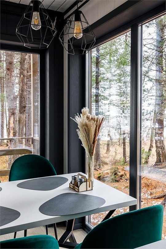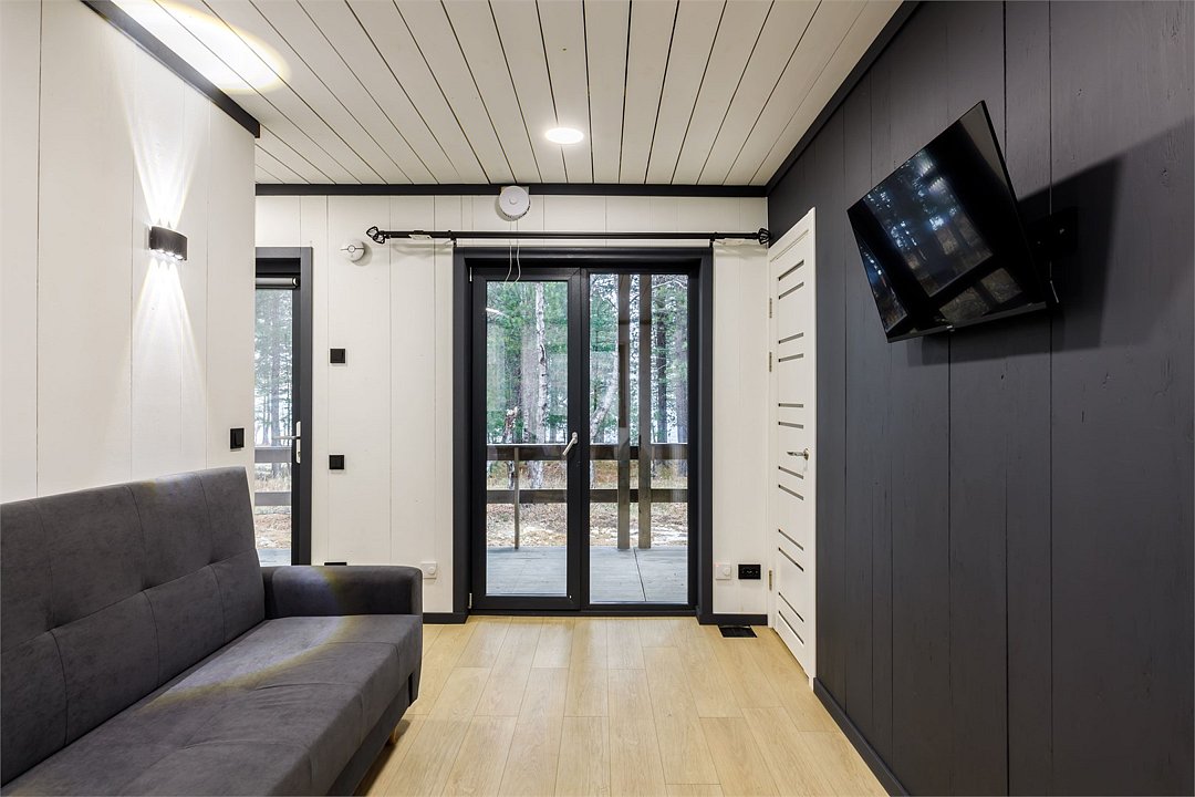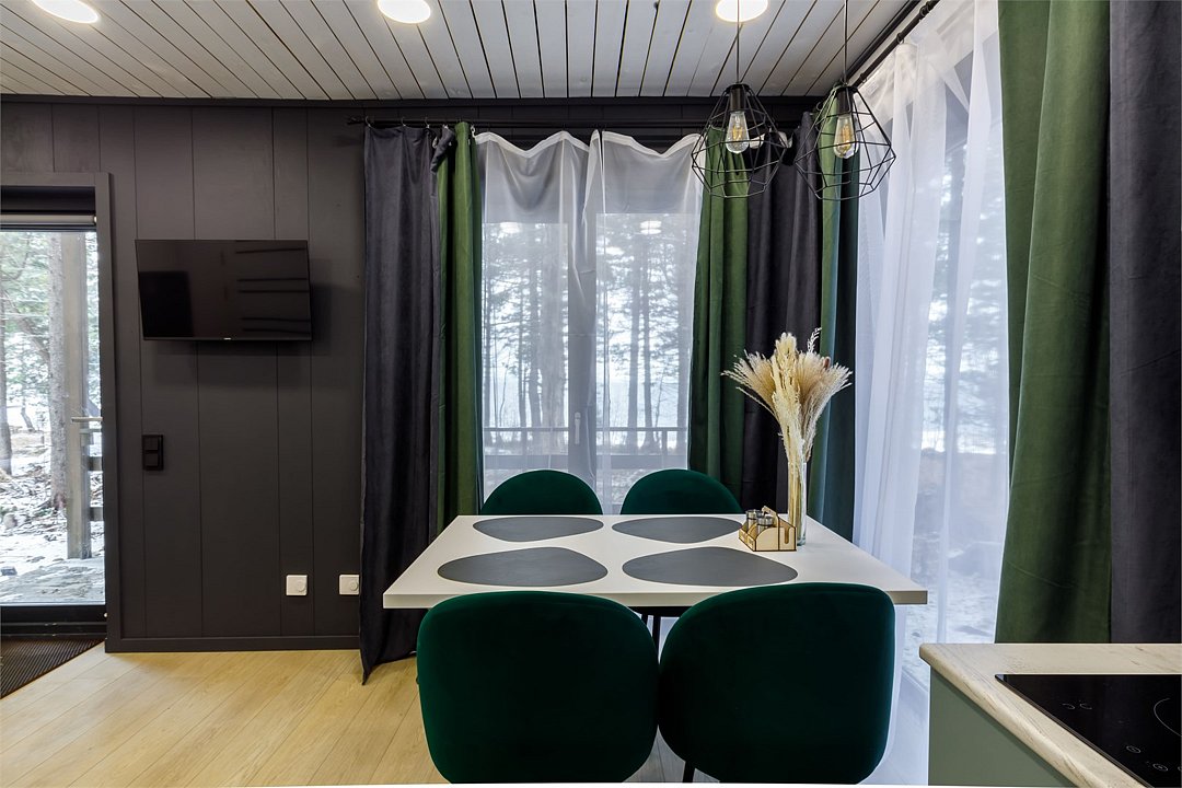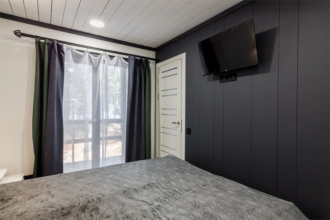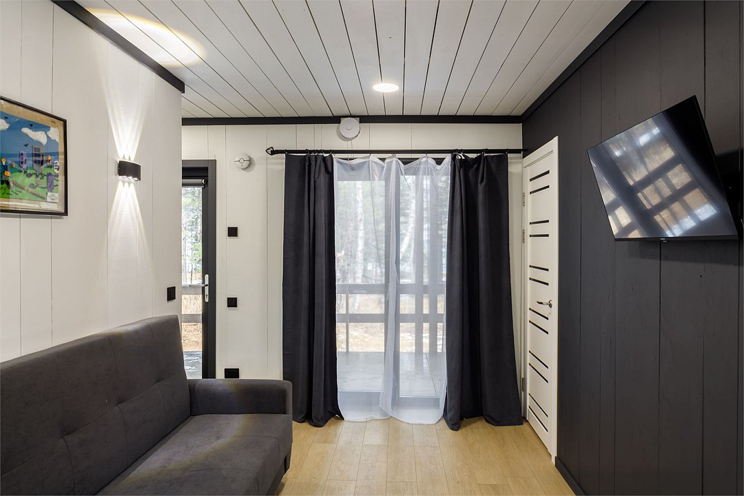 Wi-Fi, холодильник, фен, плита для приготовления пищи, микроволновая печь, утюг, душевая кабина, санузел, водонагреватель, халаты, банные полотенца, тапочки, гигиенические средства, терраса, две односпальные или большая двуспальная кровать, гладильная доска, стулья, шкаф для одежды, вешалки, обеденный стол, зеркало, набор посуды, чайник, унитаз, раковина, обеденная зона, кухонная посуда, стаканы, кухонная утварь, столовые приборы, туалетные средства, диван-кровать, раскладной диван, кухонный уголок, вид на озеро, телевизор со Smart TV, вид на лес, набор для приготовления чая и кофе, мыло, затемняющая штора, окна от пола до потолка, можно с питомцамиВ доме