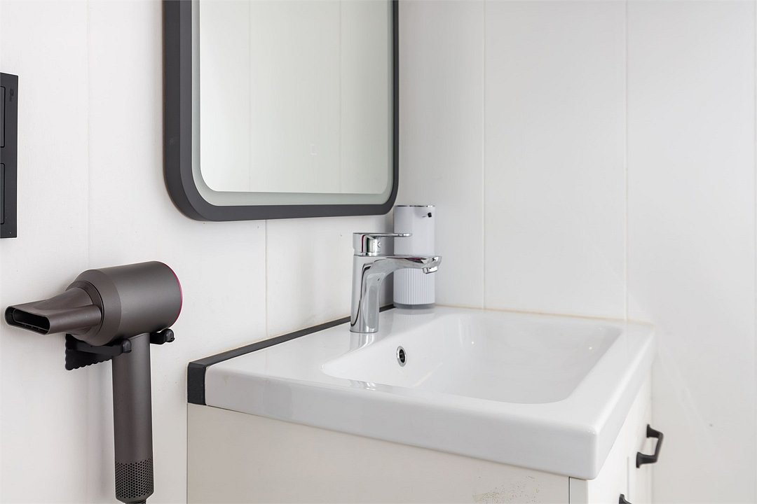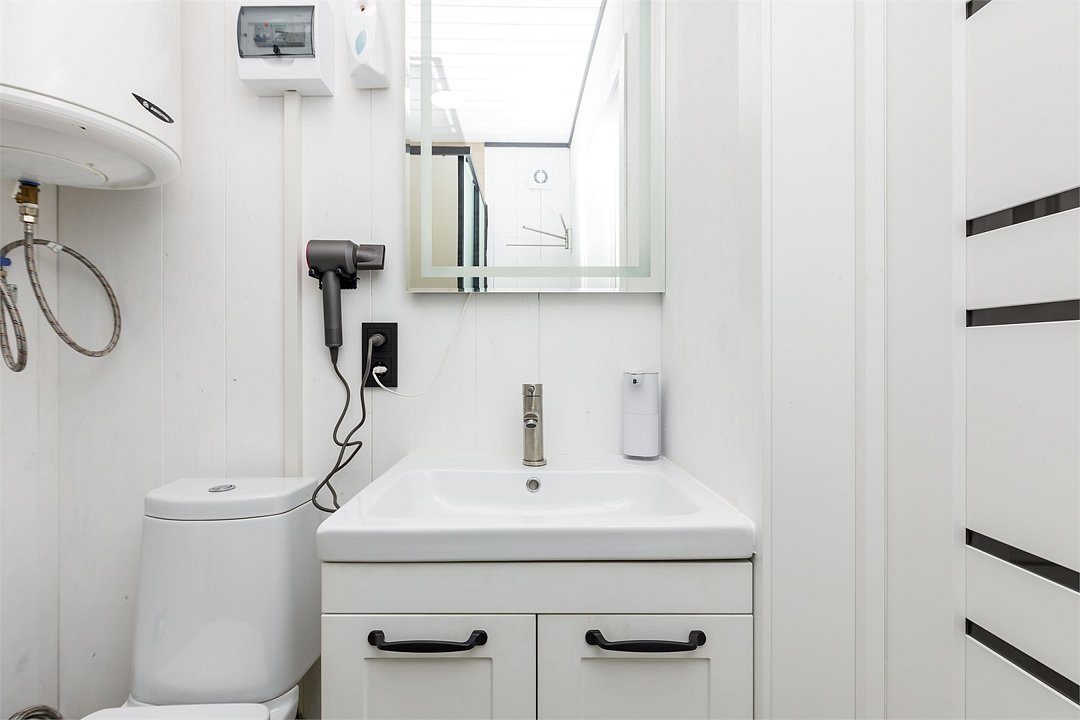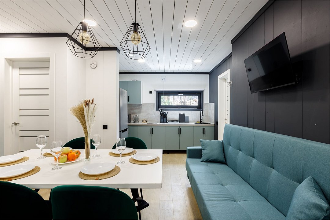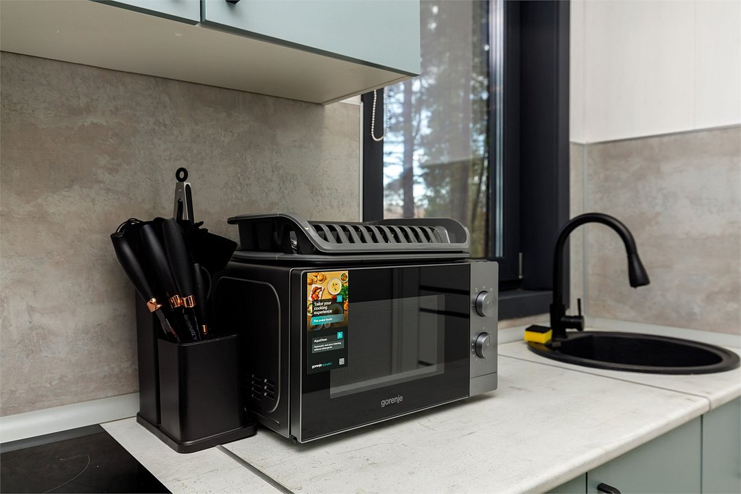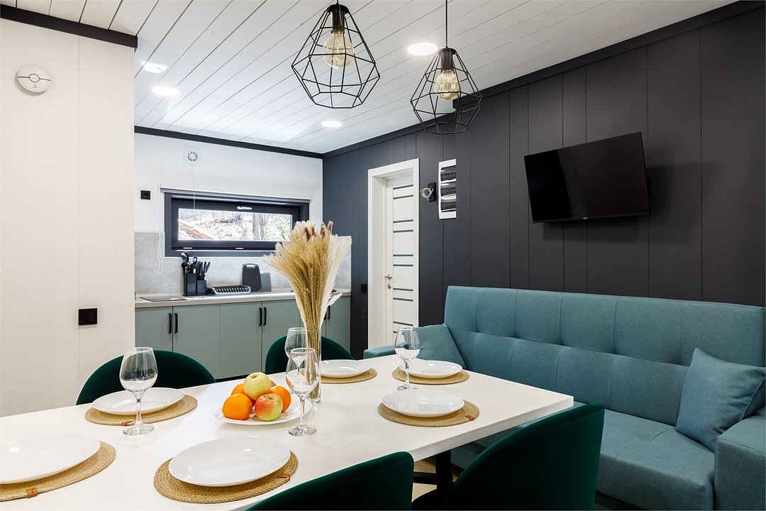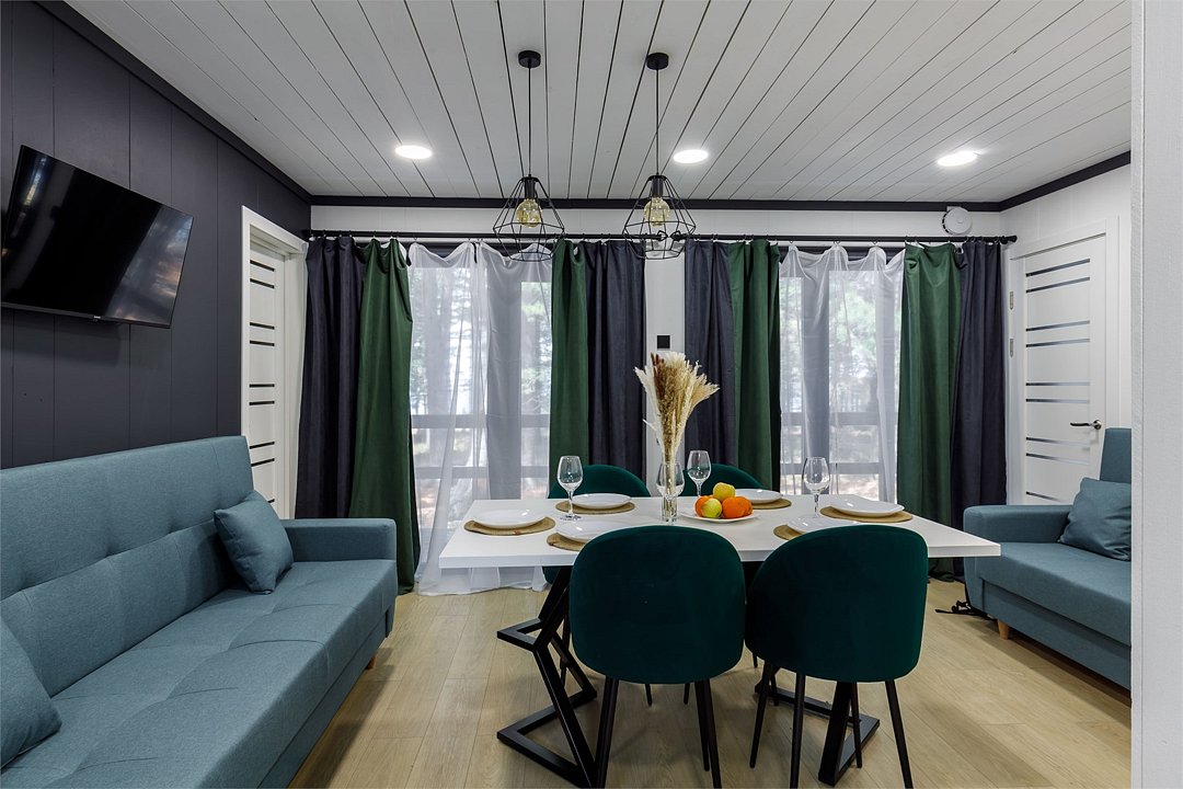 Wi-Fi, холодильник, фен, плита для приготовления пищи, микроволновая печь, утюг, душевая кабина, санузел, водонагреватель, халаты, банные полотенца, тапочки, гигиенические средства, терраса, две односпальные или большая двуспальная кровать, гладильная доска, стулья, шкаф для одежды, вешалки, обеденный стол, зеркало, набор посуды, чайник, унитаз, раковина, обеденная зона, кухонная посуда, стаканы, кухонная утварь, столовые приборы, туалетные средства, диван-кровать, раскладной диван, кухонный уголок, вид на озеро, телевизор со Smart TV, вид на лес, набор для приготовления чая и кофе, мыло, затемняющая штора, окна от пола до потолка, можно с питомцамиВ доме