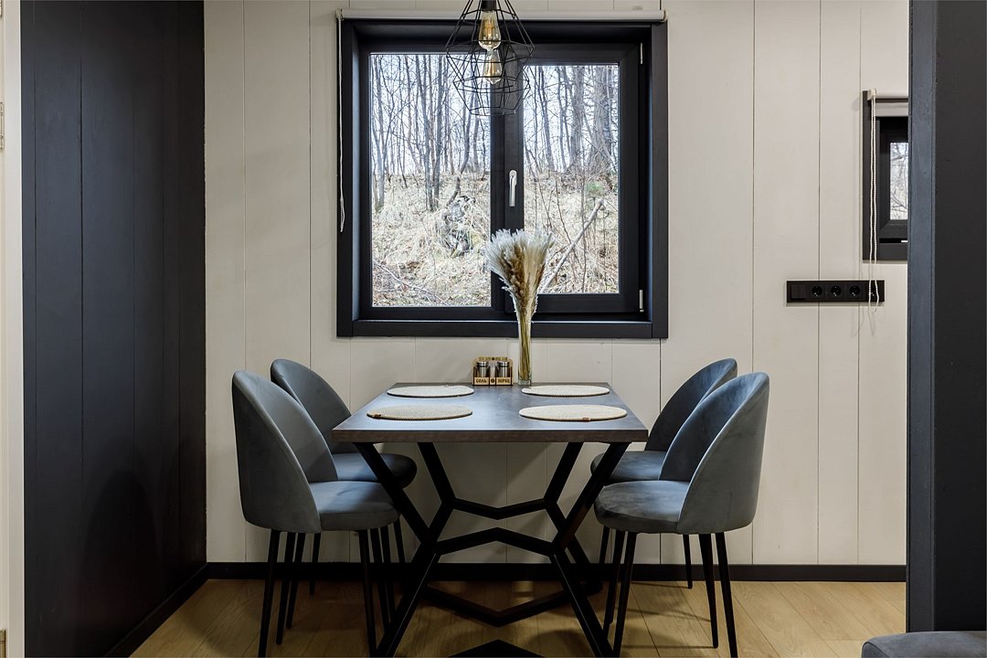 Уютный трехмодульный модульный дом с красивым видом из окна на озеро Байкал с панорамными окнами, теплыми полами и индивидуальной террасой с мебелью, выполнен из экологически чистых материалов по современным технологиям. В номере есть все необходимое для комфортного проживания. Комфортное размещение от 4 человек. Максимальное количество гостей - 6 человек (2 двуспальные кровати или 4 односпальные кровати, 2 двуспальных дивана).Услуги и удобства