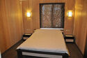 На втором этаже в каждом номере одна двуспальная кровать, телевизор, чайник. Удобства в номере.
