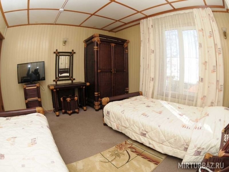 В доме: Две односпальные кровати, диван, санузел, душевая кабина, ТВ, холодильник, стол, стулья, чайник, шкаф, гладильная доска, вентилятор.