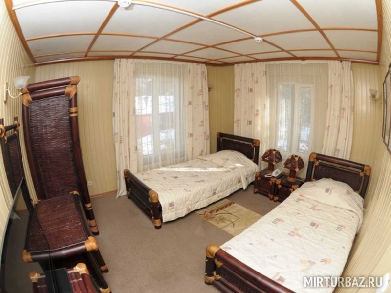 В номере: Две односпальные кровати, санузел, душевая кабина, ТВ, холодильник, чайник, шкаф.