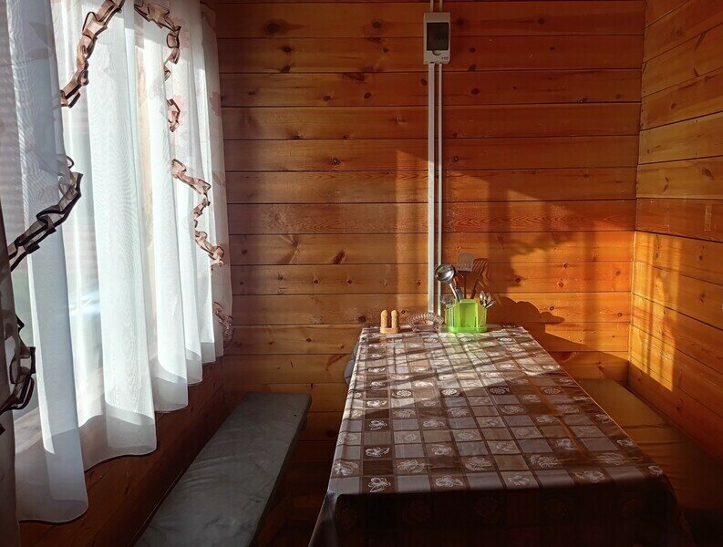 НедостаткиНе хватает в домике шкафов под посуду и одежду.