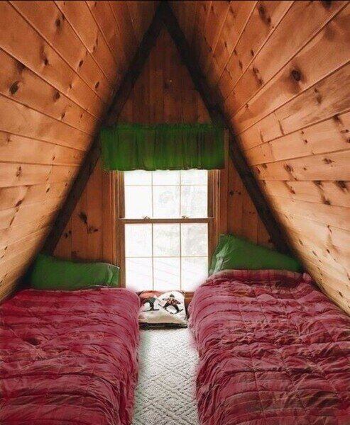 Второй этаж занимает спальня. Конфигурация спальных мест: двуспальная и две односпальные кровати.