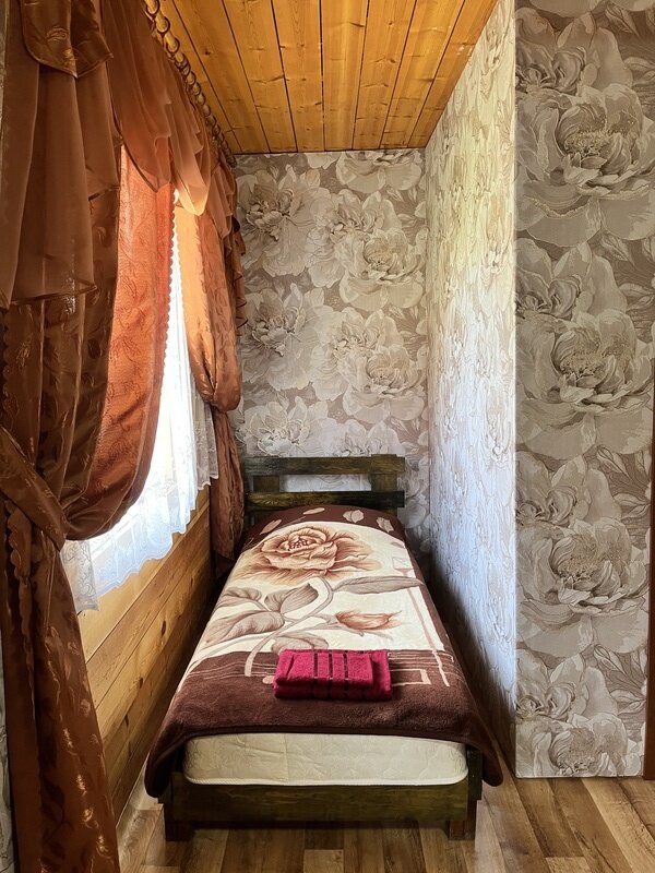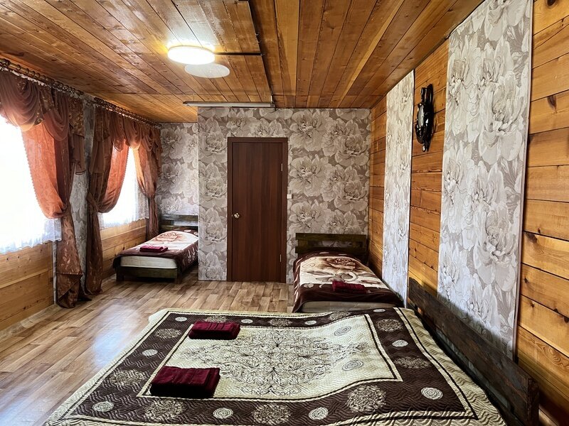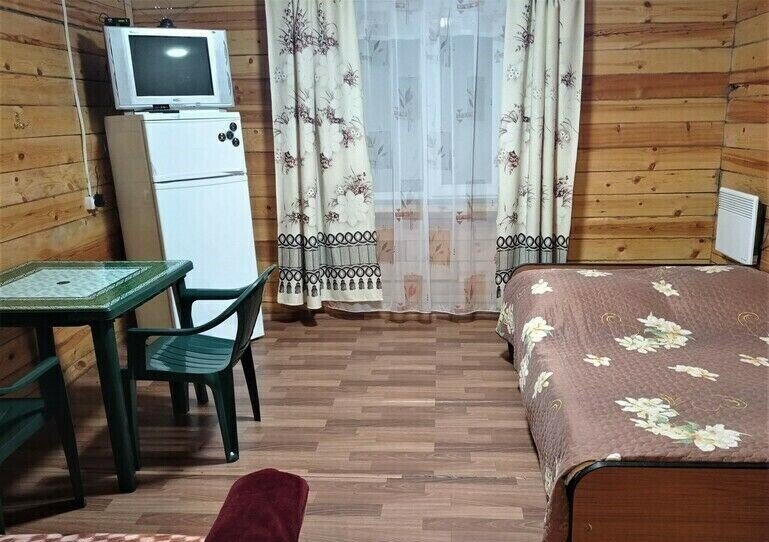 Тёплый, уютный номер эконом-класса расположен на первом этаже деревянного здания. В номере двуспальная кровать. Дополнительные места в номере (в т. ч. для детей) предоставляются за отдельную плату.