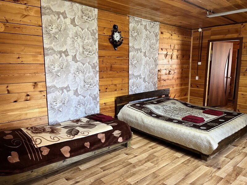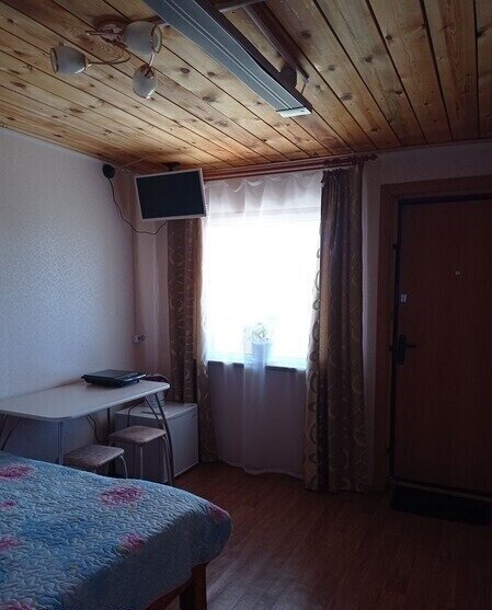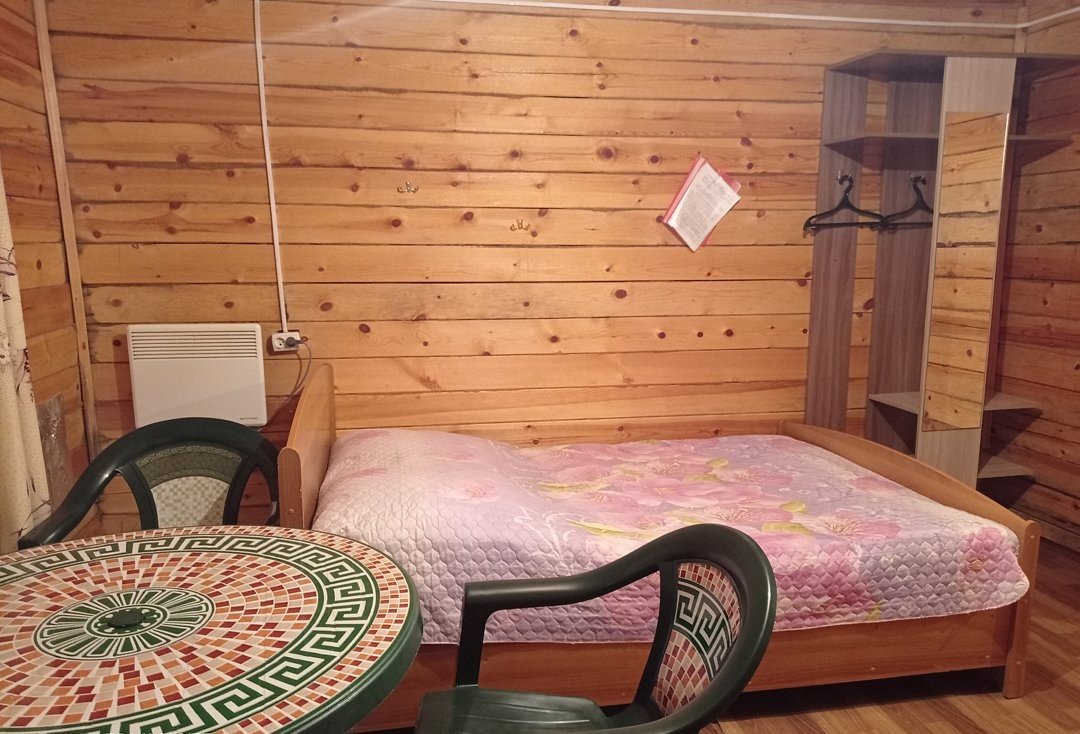 Благоустроенный отапливаемый номер с двуспальной кроватью расположен на первом этаже.