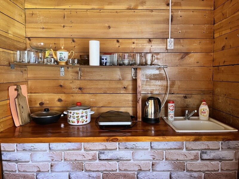 В каждом номере имеется прихожая, холодильник и стол для чаепитий. Отопление - конвекторный обогреватель. Санузлы общего пользования (умывальники, туалеты, душ) находятся в санитарном блоке рядом с гостевым домом.