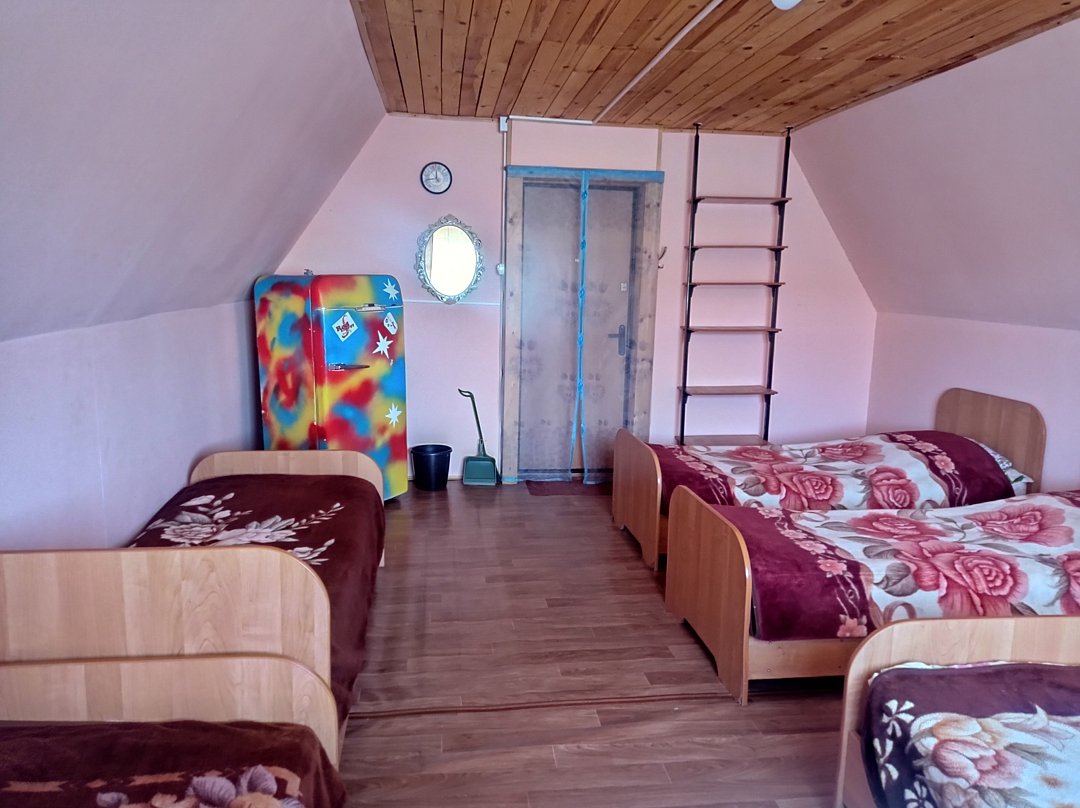 Просторный шестиместный номер эконом-класса занимает второй этаж небольшого корпуса на три номера. Конфигурация спальных мест: 6 односпальных кроватей.