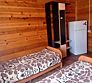 Конфигурация спальных мест: двуспальная кровать и 2 односпальных кровати. Домик благоустроенный, состоит из кухни, совмещённого санузла и жилого помещения. Кухня оснащена всем необходимым для приготовления пищи и комплектом посуды на 4 человека. В номере имеется телевизор, плательный шкаф с зеркалом.