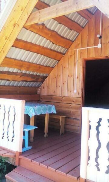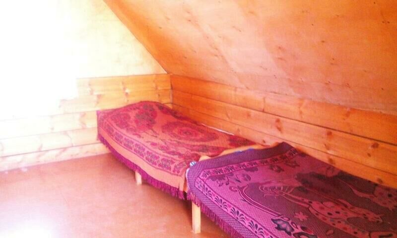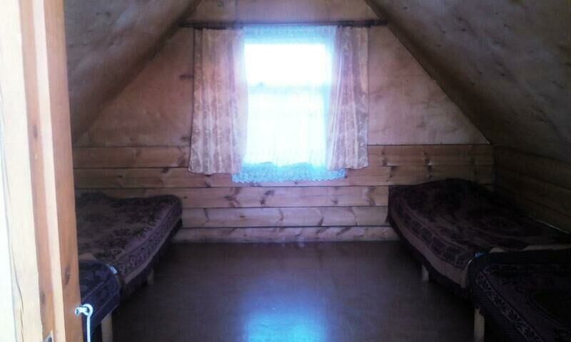Проживание в домиках по 4 и 5 человек, таких на территории только 4 домика. Также на территории имеется 2-х этажный корпус с 2-х, 3-х местным размещением. Автостоянка, посуда, мангал, постельное белье предоставляется бесплатно. На территории находится детская площадка. Удобства на улице.