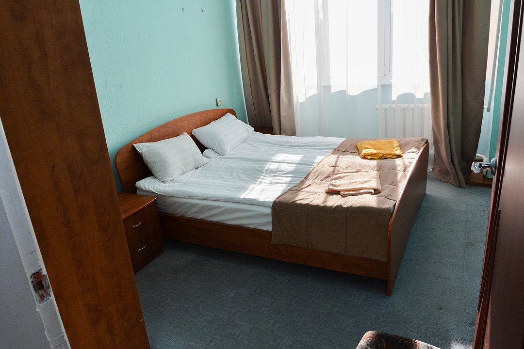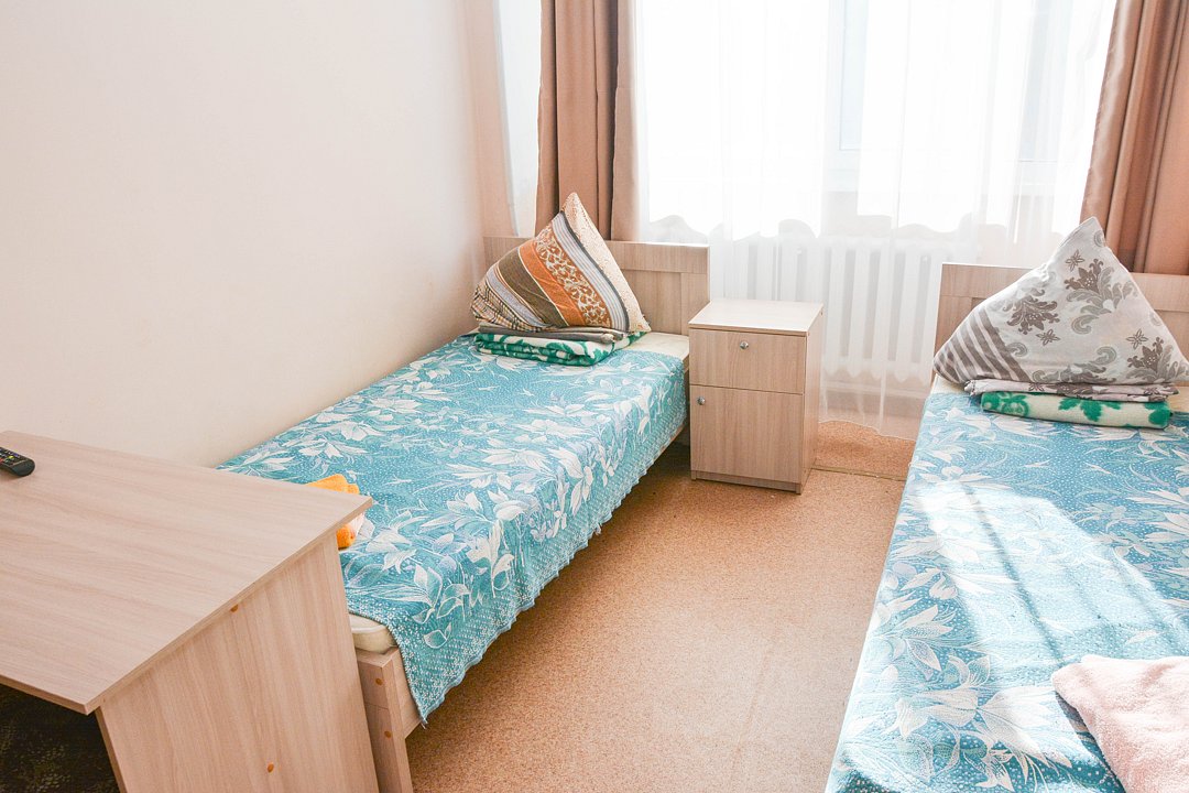 Небольшой удобный номер, состоящий из одной жилой комнаты с двумя односпальными кроватями. Имеется ванная комната в блоке из двух номеров, общий коридор. Номер рассчитан на проживание двух человек с подселением. Расположение: Корпус Саяны.