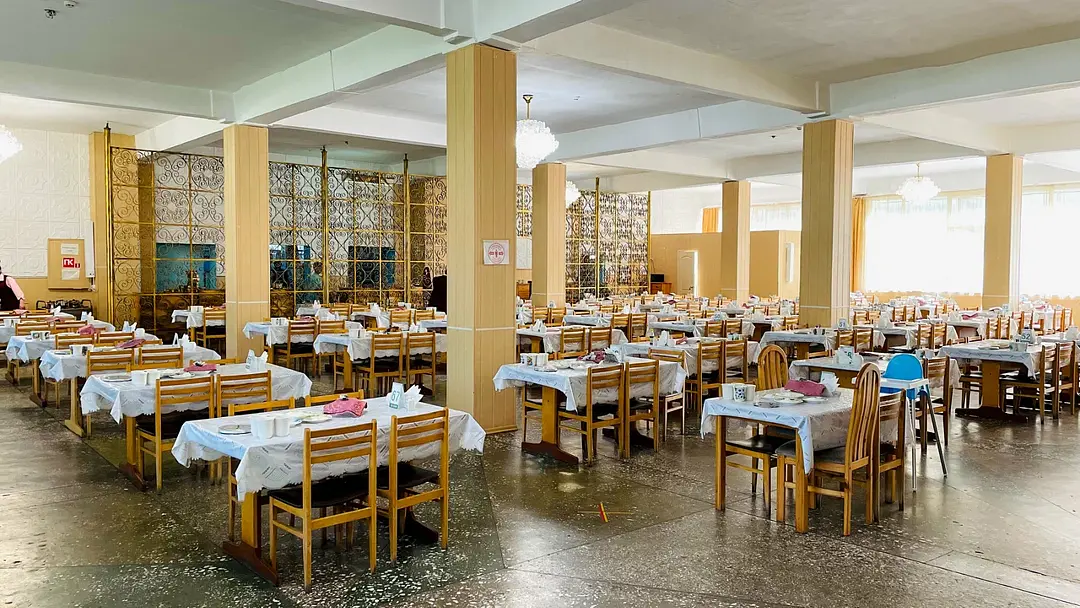Столовая курорта расположена на 2 этаже здания санатория «Саяны». Вместимость: 350 человек.