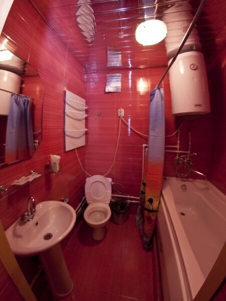 Внутри номера в Вашем распоряжении вместительный гардероб, столик со стульями, двуспальная кровать, телевизор, холодильник, чайные приборы, электрочайник, ванная комната с/у/ с ванной, а также полный набор средств личной гигиены.