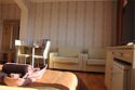 В номере имеется 2 комнаты. В одной комнате большая 2-х спальная кровать, во второй комнате 2 односпальные кровать.
