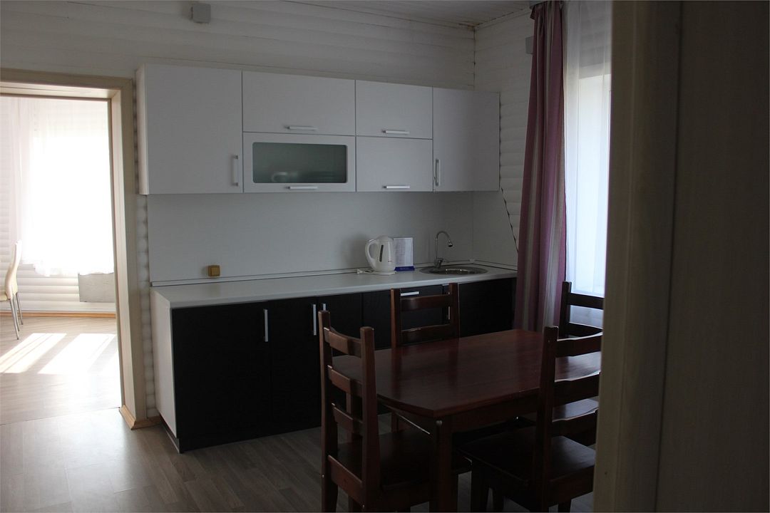2 комнаты. В одной комнате 5 односпальных кроватей, во второй комнате двуспальная кровать. Кухонная зона, чайник, холодильник, телевизор, шкаф для вещей, мебельный гарнитур, ламинат.