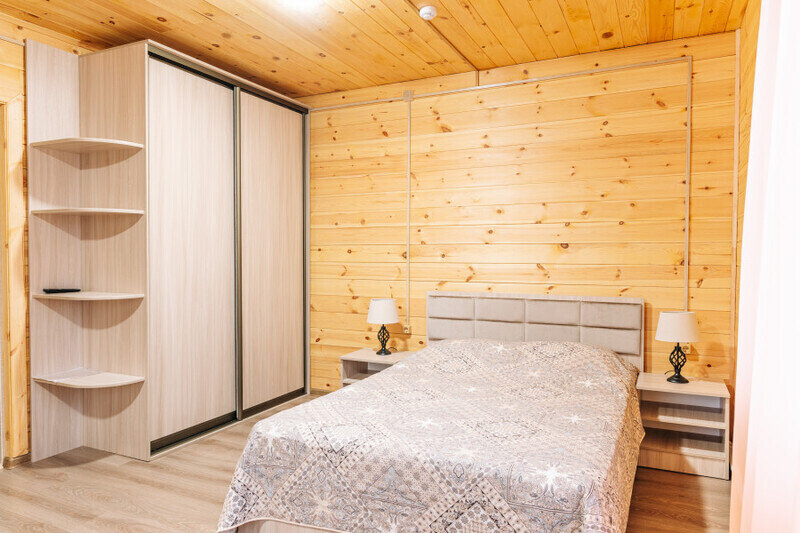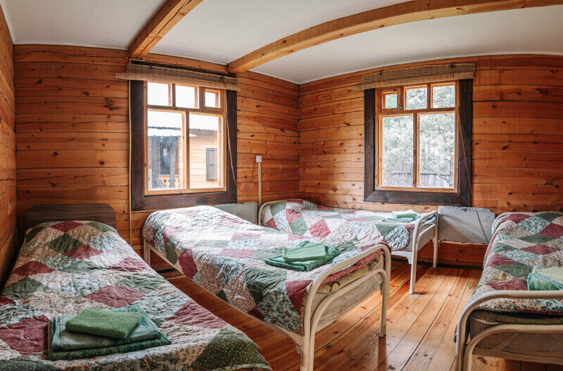 - две двуспальные (ширина 140 см) и девять односпальных (ширина 70 и 80 см) кроватей с ортопедическими матрасами;