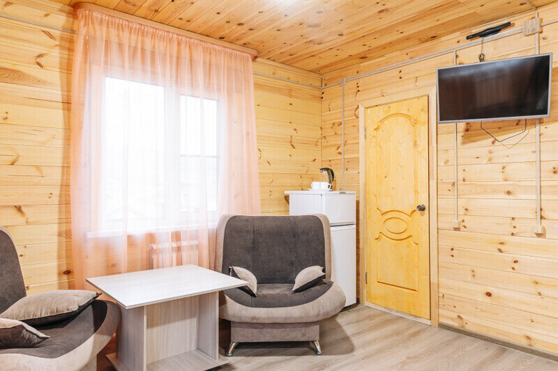 Подготовлены комфортабельные номера, а для желающих уединиться есть отдельные коттеджи. В каждом номере есть телевизор, собственная ванная комната, также работает бесплатный Wi-Fi.