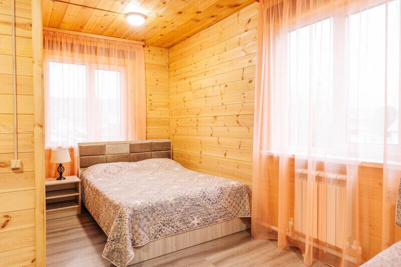 Рассчитан на большую дружную компанию (максимальная вместимость 13 человек). В нём имеется 4 комнаты (две на первом и две на втором этажах) просторная кухня-гостиная, две комнаты гигиены (душ, туалет), холл.