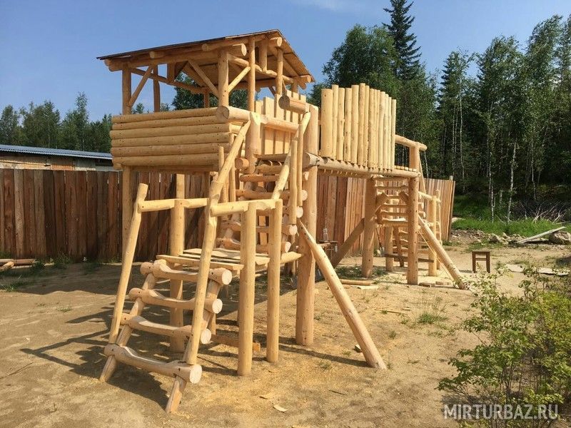 Для развлечения Ваших детей на базе имеется обновленная детская площадка для маленьких гостей, с батутом и бассейном.