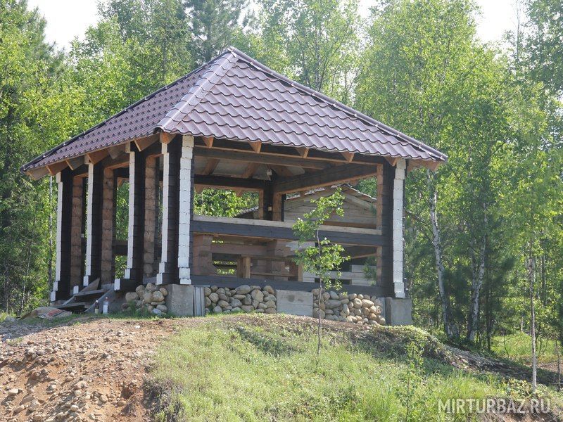 Для комфортного отдыха Вам предлагается уютная крытая беседка, расположенная на возвышенности, с прекрасным видом на озеро в виде сердца. Беседка идеально подходят для отдыха на свежем воздухе в дружеской компании.