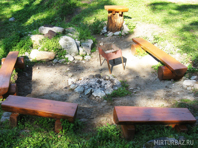 На территории расположено несколько оборудованных зон для комфортного отдыха с мангалами, столами и лавочками.