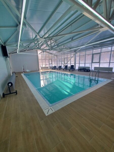 К вашим услугам большой и современный бассейн с уникальной немецкой системой очистки для нашего региона, а также специальным механизмом для людей с ограниченными возможностями!