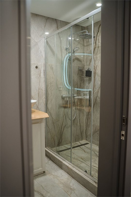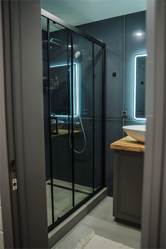Wi-Fi, фен, ванная комната, душевая кабина, санузел, водонагреватель, теплый пол, халаты, банные полотенца, тапочки, косметические средства, двуспальная кровать, две односпальные кровати, унитаз, раковина, отдельный вход в номер, душ, вид во двор, туалет, панорамные окна, туалетные принадлежности премиум-класса, шапочка для душа, мыло, дождевой и ручной душ, без питомцевВ гостиничном номере