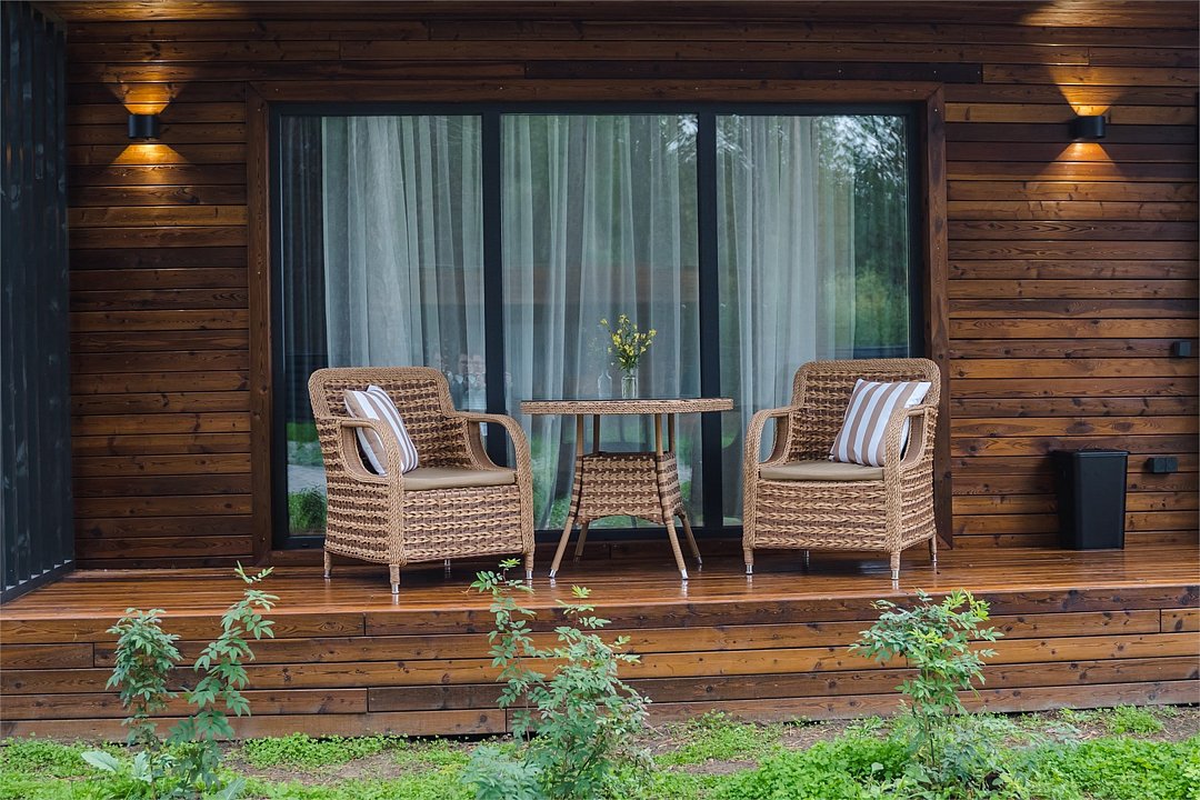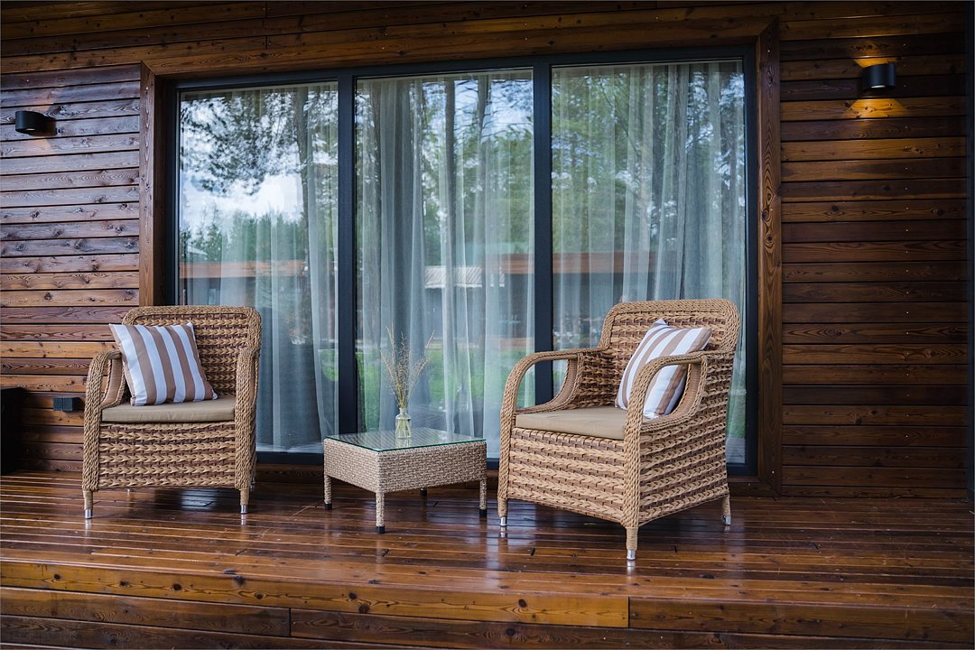 Домик повышенной комфортности, с авторским дизайном. - собственная терраса с панорамными окнами и видом на байкальскую природу; - двуспальная комфортабельная кровать; - прикроватные лампы; прикроватные тумбы; - шторы Blackout; - шкаф для личного гардероба; - чайный столик с кофемашиной и чашками; - стулья; - ковровое покрытие; - душ; - раковина; - санузел; - зеркало; - наборы для личной гигиены; - дополнительное спальное место - еврораскладушка; - услуги горничной.Услуги и удобства
