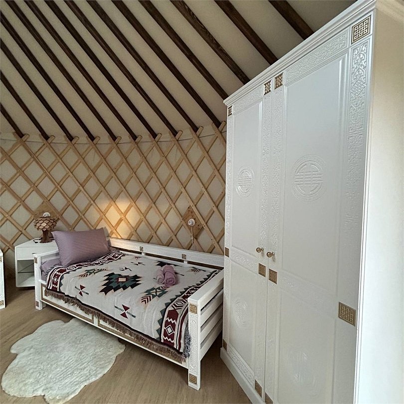 ванная комната, водонагреватель, две односпальные кровати, стулья, шкаф для одежды, унитаз, мягкая мебель, отдельный вход в номер, душ, вид во двор, ламинат, стол, мангал, раскладной диван, номер для некурящих, двуспальный раскладной диван-кровать, без питомцевВ юрте