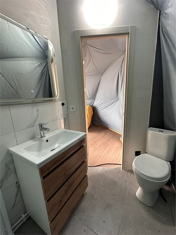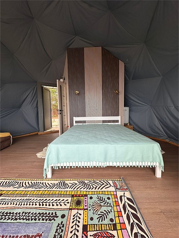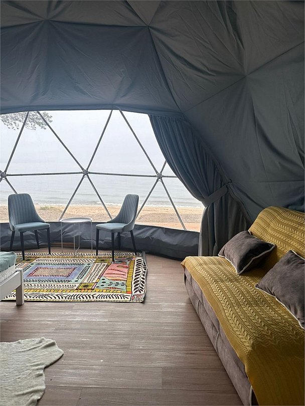 холодильник, светильник, вентилятор, ванная комната, санузел, водонагреватель, теплый пол, банные полотенца, двуспальная кровать, стулья, шкаф для одежды, унитаз, отдельный вход в номер, стол, туалет, панорамные окна, диван-кровать, вид на озеро, теплые полы, номер для некурящих, уборка номера, без питомцевВ купольном шатре