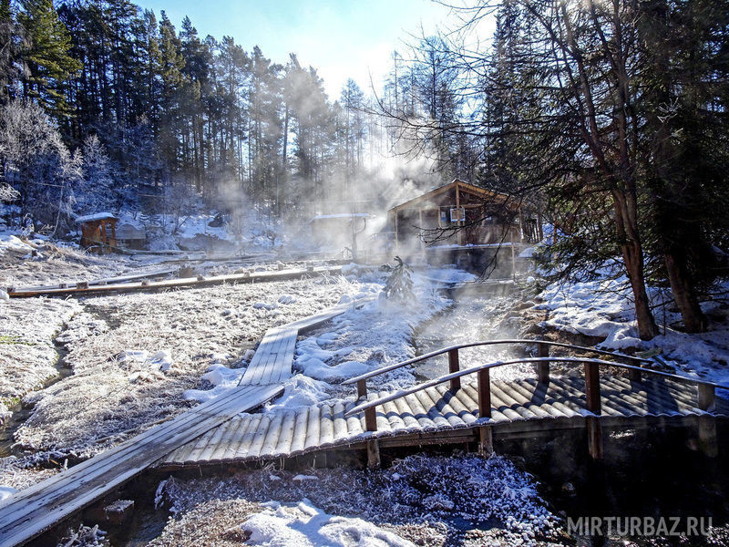 Расстояние до источника 50 км. Восточное побережье Северного Байкала. Добраться можно зимой по льду на машине или летом на катере. Предоставляется трансфер.