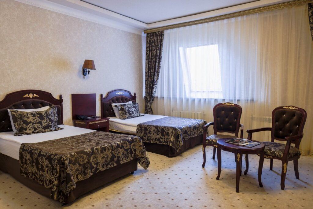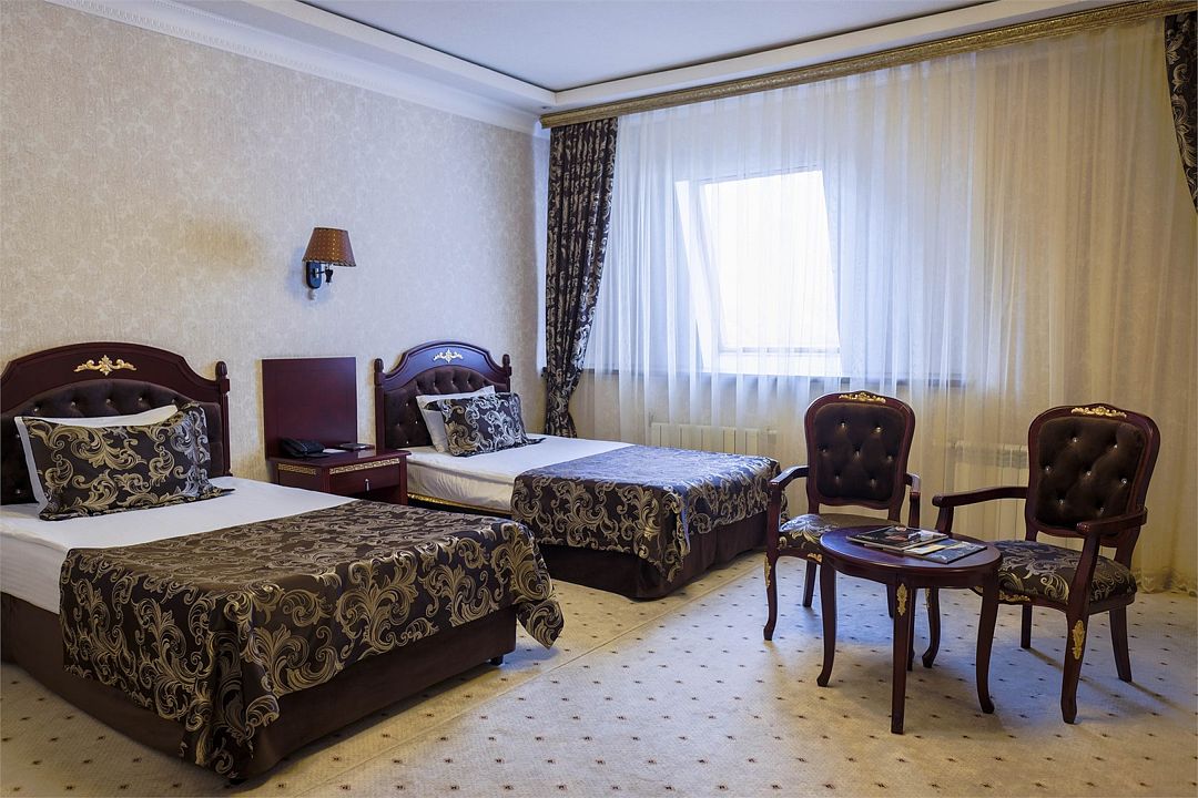 Каждый номер оснащен всем необходимым для удобного отдыха, включая мебель и бытовую технику. У гостей есть возможность пользоваться отдельными ванными комнатами с душем и туалетом. Комплекс состоит не только из отеля, но и из ресторана «Огни Востока», где подают завтраки и проводят мероприятия для групп от 60 до 100 человек. Для организации встреч, конференций и тренингов гости могут арендовать конференц-зал. В нем есть эргономичная мебель, телевизор и Wi-Fi.