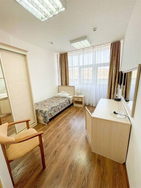 Современный 6 этажный корпус с различными категориями номеров на любой вкус и бюджет готовы принять одновременно 310 гостей.