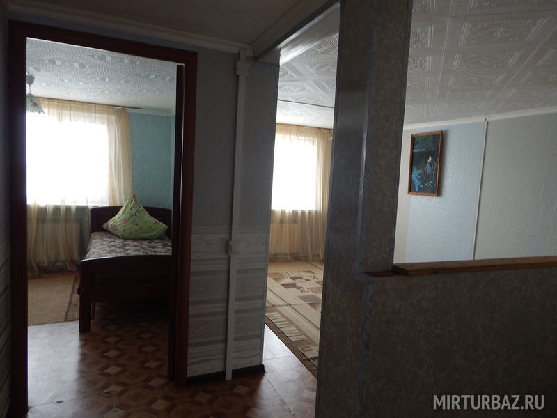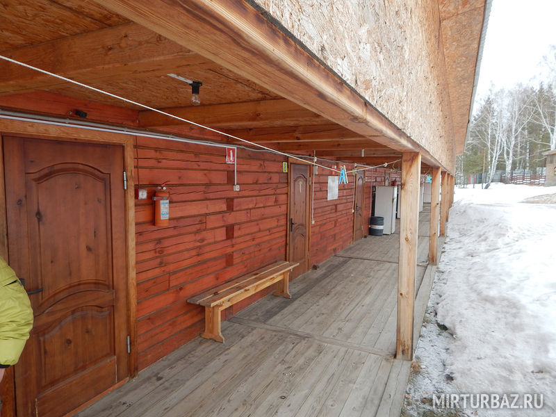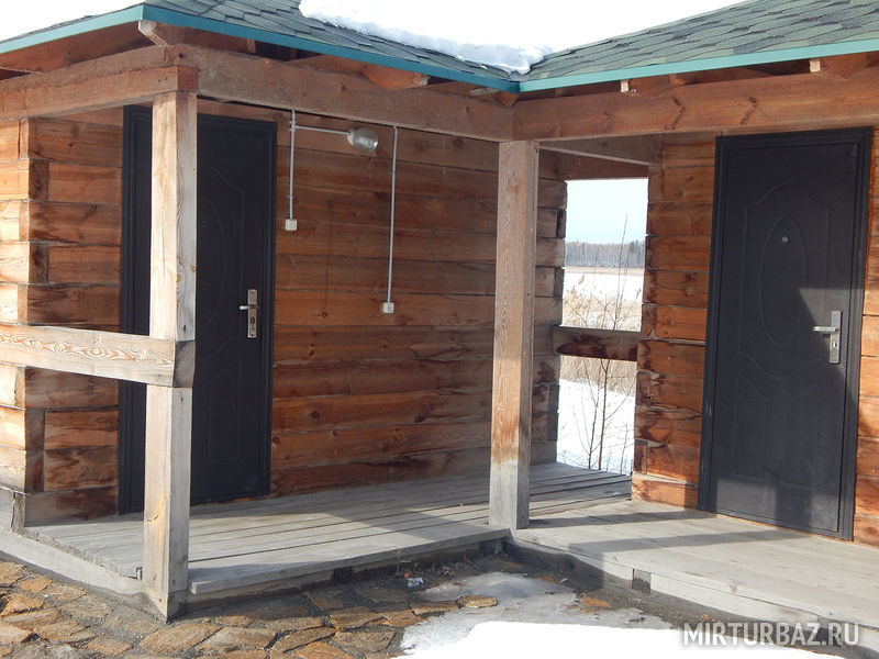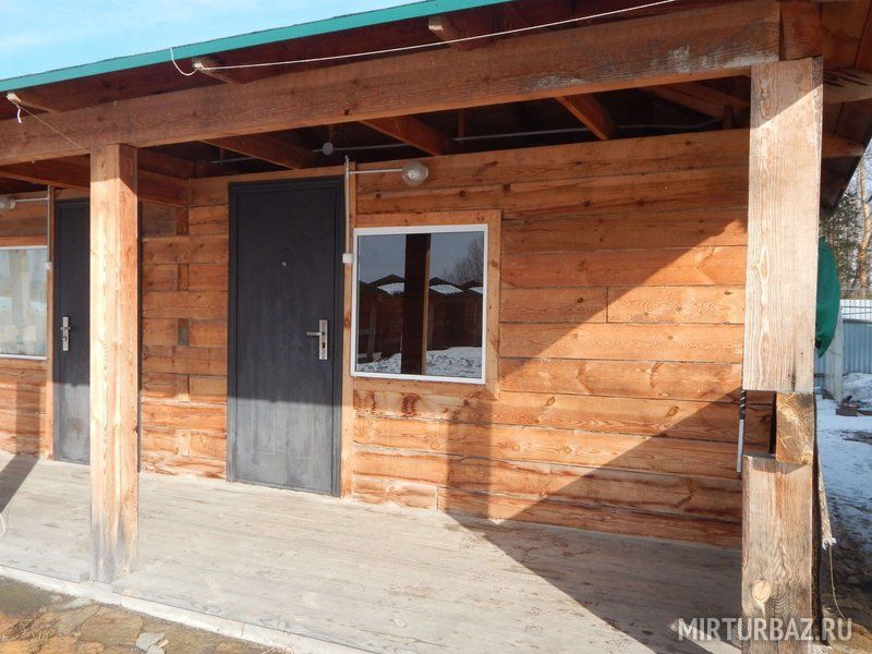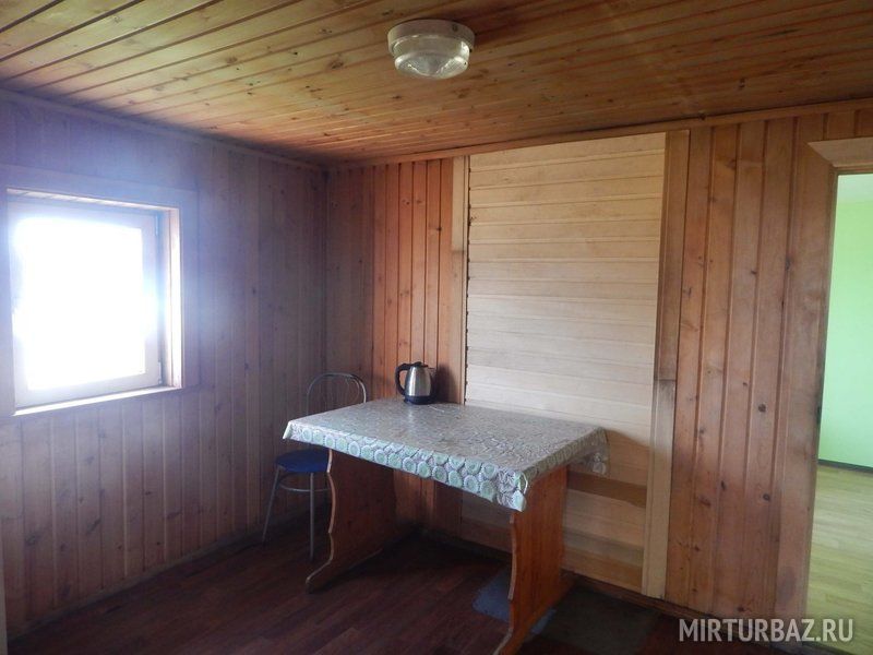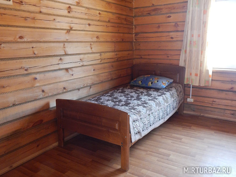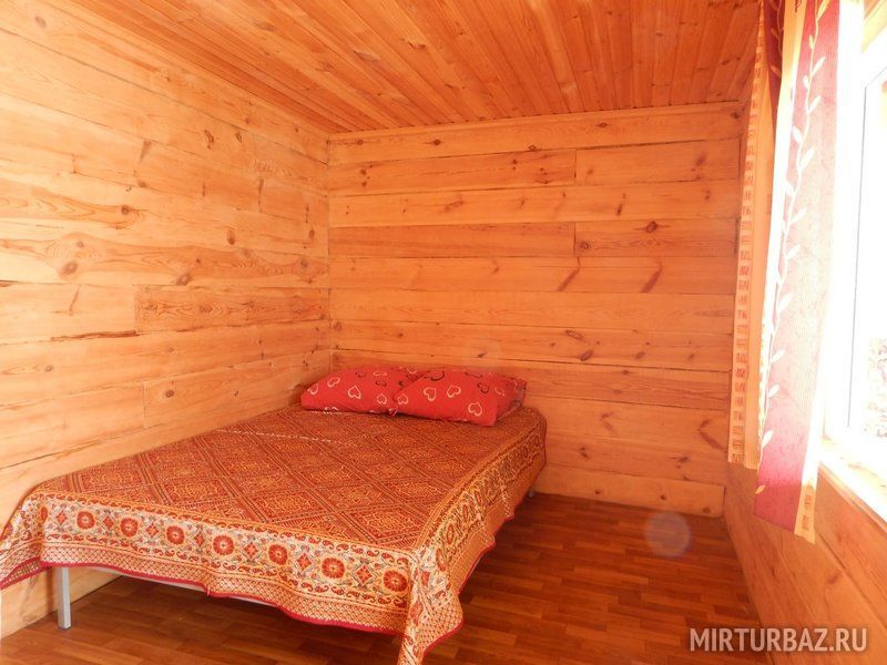 Брусовый домик на 4 комнаты. В комнате имеется одна 2-х спальная кровать, стол, 2 стула и окно. На улице холодильник на 2 комнаты. Удобства на территории базы.