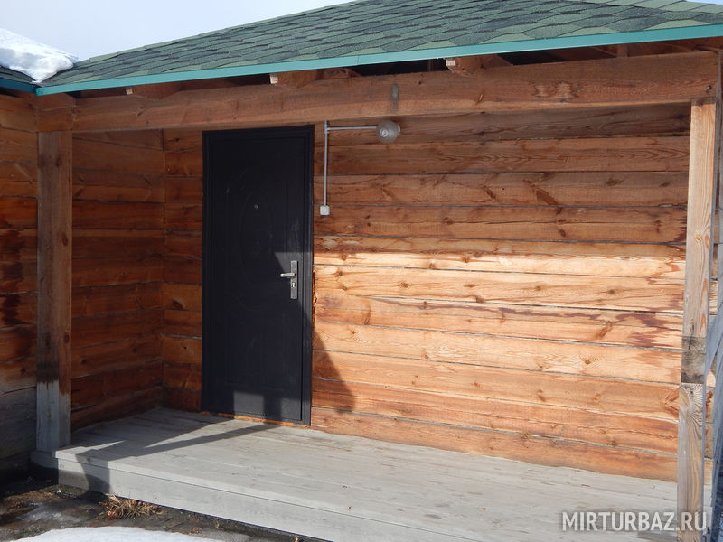 Двухэтажный бревенчатый дом, в котором может разместиться до 10 человек. Дом обустроен всем необходимым для комфортного проживания: кухня и душевая, совмещённая с санузлом. В домике предусмотрено наличие необходимой бытовой техники, телевизора, аудиосистемы, посуды.